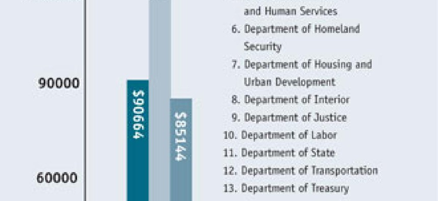 Who would have guessed that the Education Department spends more than three times more on IT per employee than DHS? IT spending per employee at the Energy Department is more than nine times the amount the Interior Department spends. Why does the Transportation Department spend more per employee than the Defense Department?